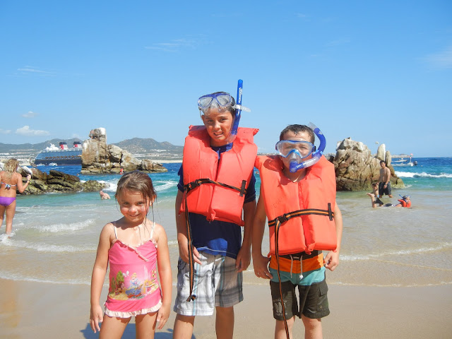 We were only in Cabo till noon this day. The 3 younger kids didn't want to leave the boat, so we put them in their clubs and left for the morning with the older girls. I was comfortable leaving them there if they stayed in their clubs, but later I found out that Travis gave the boys a key to the room so they could go where they wanted! This is how their day went down: they swam without sunblock, played sports, accidentally kicked a soccer ball off the cruise boat, ate 5 ice creams cones & about 7 slices of pizza! Luke said it was one of the best days of his life....I am sure it was! Meanwhile us and the girls went to Medano Beach and did some souvenir shopping.